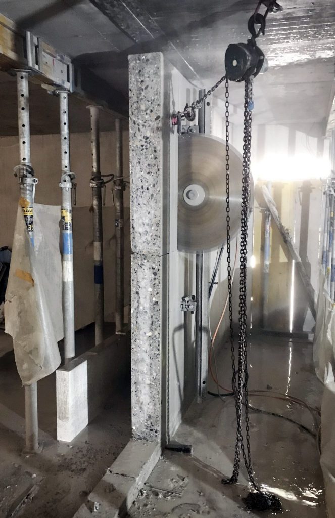 Assemblée avec des blocs de béton sciés dans des murs destinés à la démolition, cette technique de construction vise à réduire l’impact environnemental de l’industrie de la construction. «Nous appliquons les principes de l’économie circulaire, en utilisant des matériaux de réemploi et en diminuant la demande en nouveau béton», explique Maléna Bastien Masse, collaboratrice scientifique à l’EPFL.
